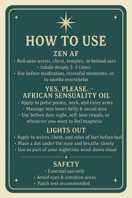 Vibe: Nighttime seduction. Deep rest. The “you will sleep like the dead but in a sexy, dreamy, cosmic way” blend.