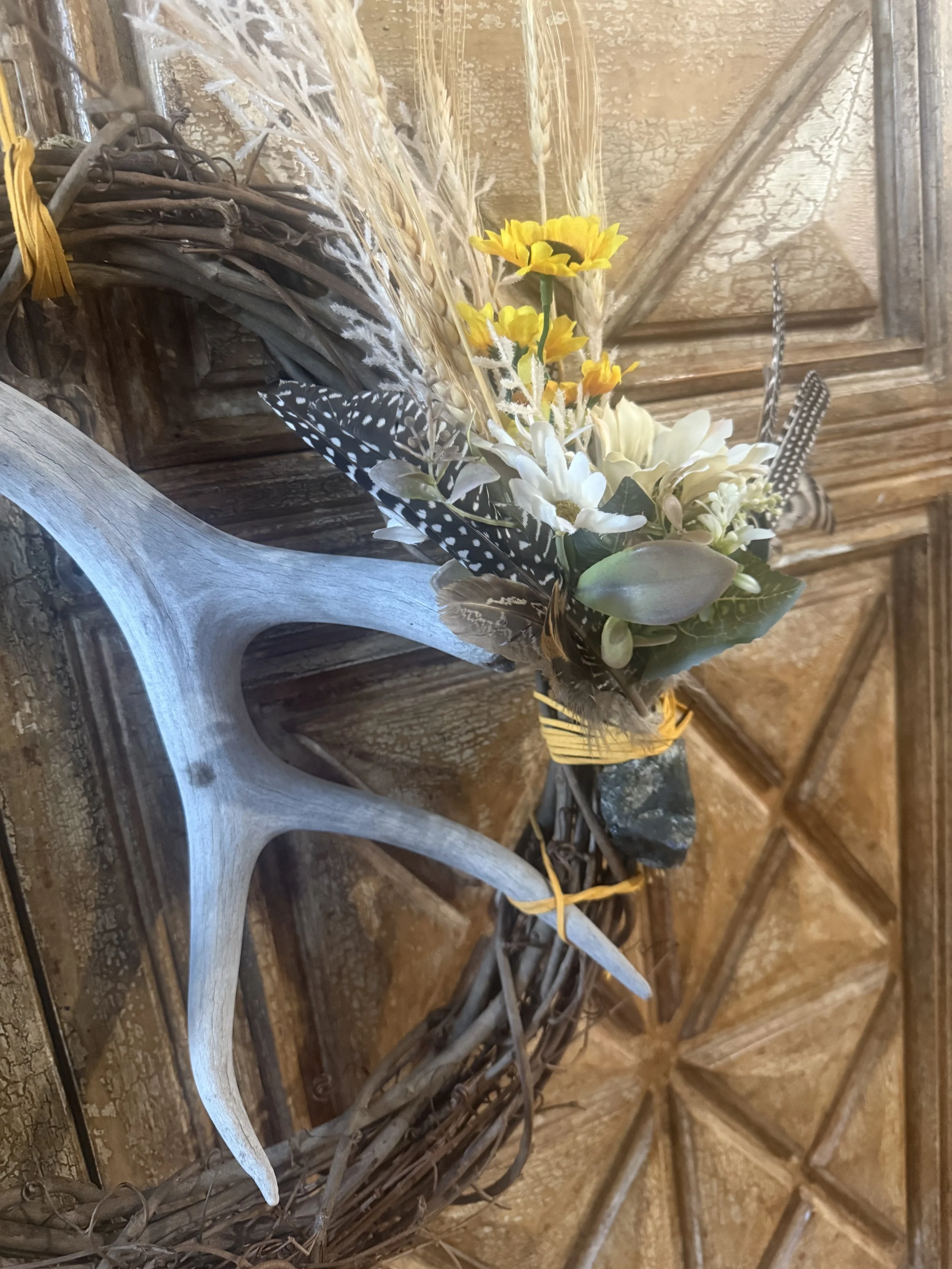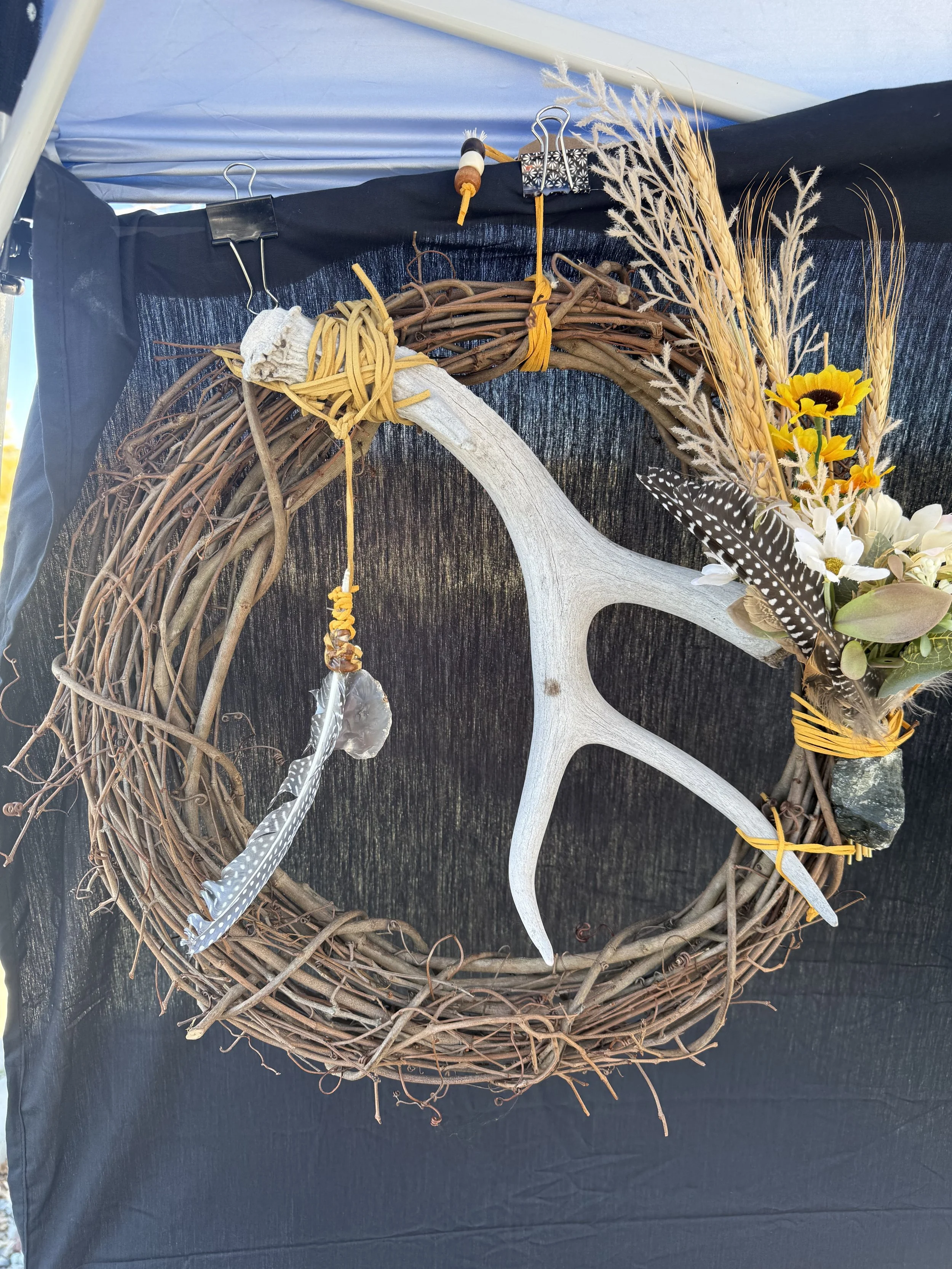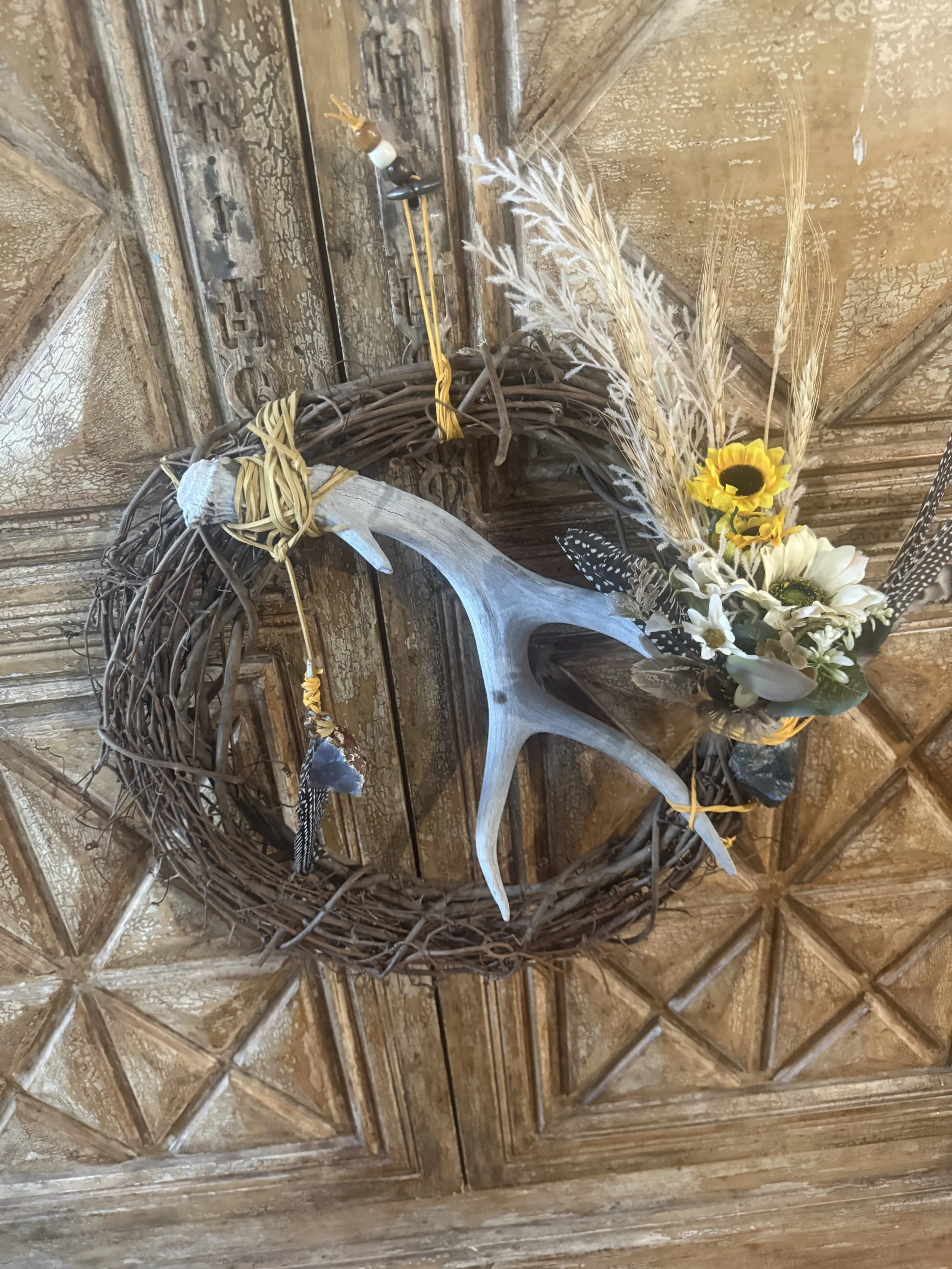 Antler, vine, wheat and stones, woven for grounding, gratitude and strength